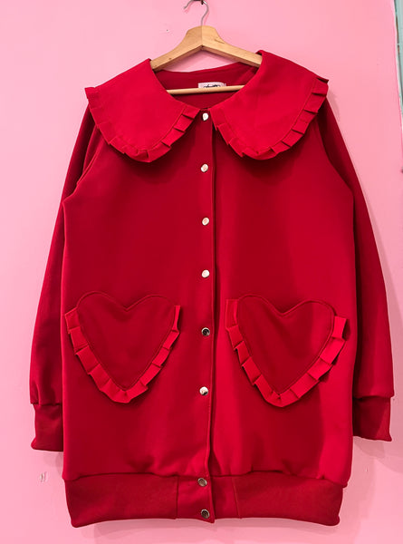 bomber hecha en franela algodon en negro, cuello y aplicacion de bolsillos en lino